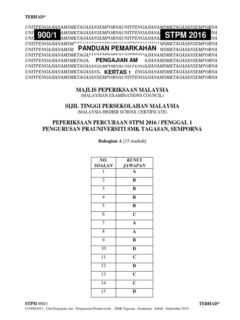 Panduan Pemarkahan Percubaan Stpm 2016 Penggal 1 Smk Tagasan Semporna Sabah Pdf